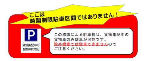 ※この標識による駐車枠は、貨物集配中の貨物車のみ駐車が可能です。